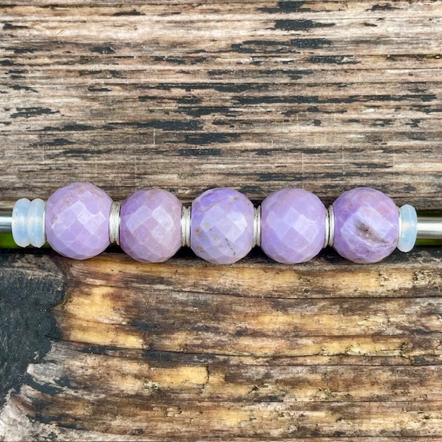 Der handgeschliffene Edelstein zeigt zarte Lavendertöne bis hin zu tiefem Purpur. Jede einzelne Jade variiert leicht in Tiefe und Farbnuance, ein Ausdruck der einzigartigen, natürlichen Schönheit des Steins.